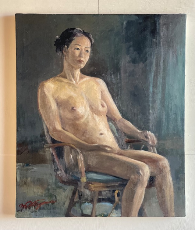 こちらで合わせた額で良ければ額装して発送させていただきます。 額の準備に発送まで1~2週間ほどいただきます。 一点のみです。 #裸婦 #油絵