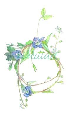 青い小花のリース